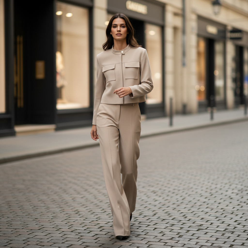Beige Set: Structured Jacket & Tailored Pants