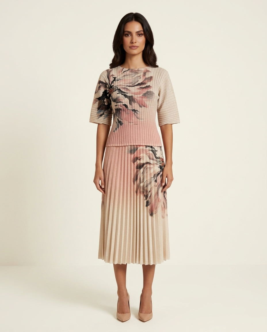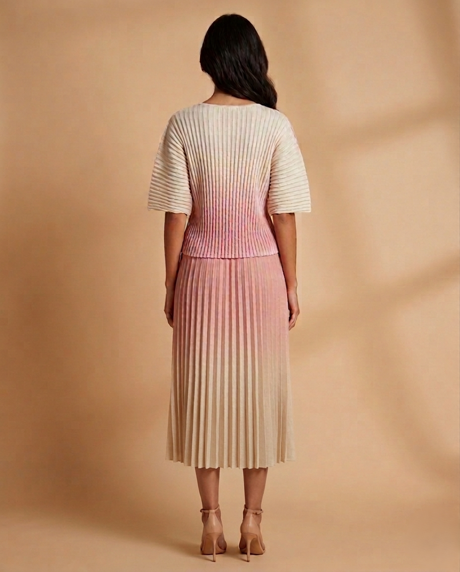 A sleek and stylish matching set featuring a fitted top and coordinating skirt for a harmonious, polished look. Designed for effortless elegance, this versatile ensemble can be dressed up or down. Perfect for cocktail parties, brunches, evening events, or stylish daytime outings where you want a cohesive, fashionable statement.